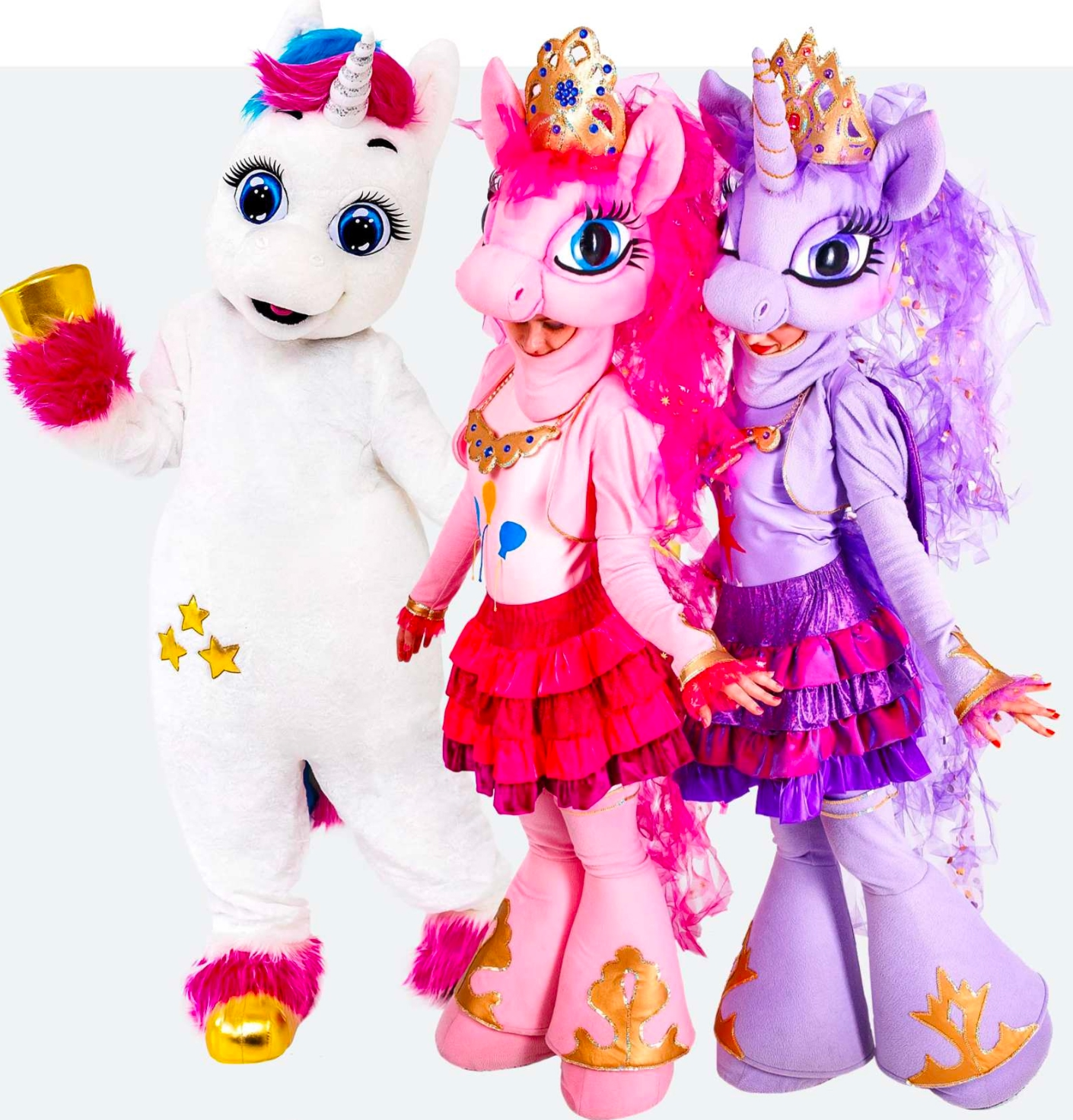 В программе: Праздник с единорожками - это яркая и красочная история о дружбе! Участники праздника, во главе с именинницей, попадут в волшебный мир единорогов и пройдут самые необычные испытания: кристаллы единорогов, фруктопад, сладкое пирожное, таинственная тропа единорогов, эстафета со звездами - добро пожаловать в чарующий мир единорогов!