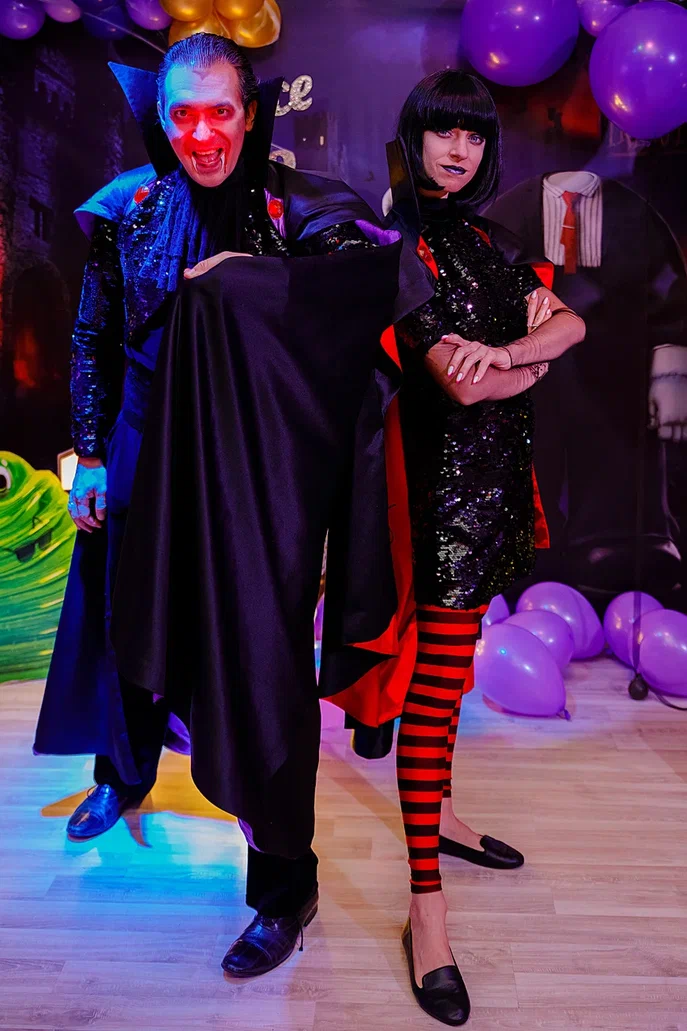 1,5 часа, 2 артиста и ростовая кукла Мумия (1 час) полный квест: -Игра «Тыквенный гольф» -Игра «Летающий глаз» или «Гиго кулак Френки» -Игра «Привидение» -Игра «Ловить языками жуков» -Игра Эликсиры -Лабиринт подземных ходов -Мешки Желе и Френки. Танцы в мешках -Игра голова Френки и мозги -Игра бинты Мумии -Граф и Мэвис находят тайную комнату